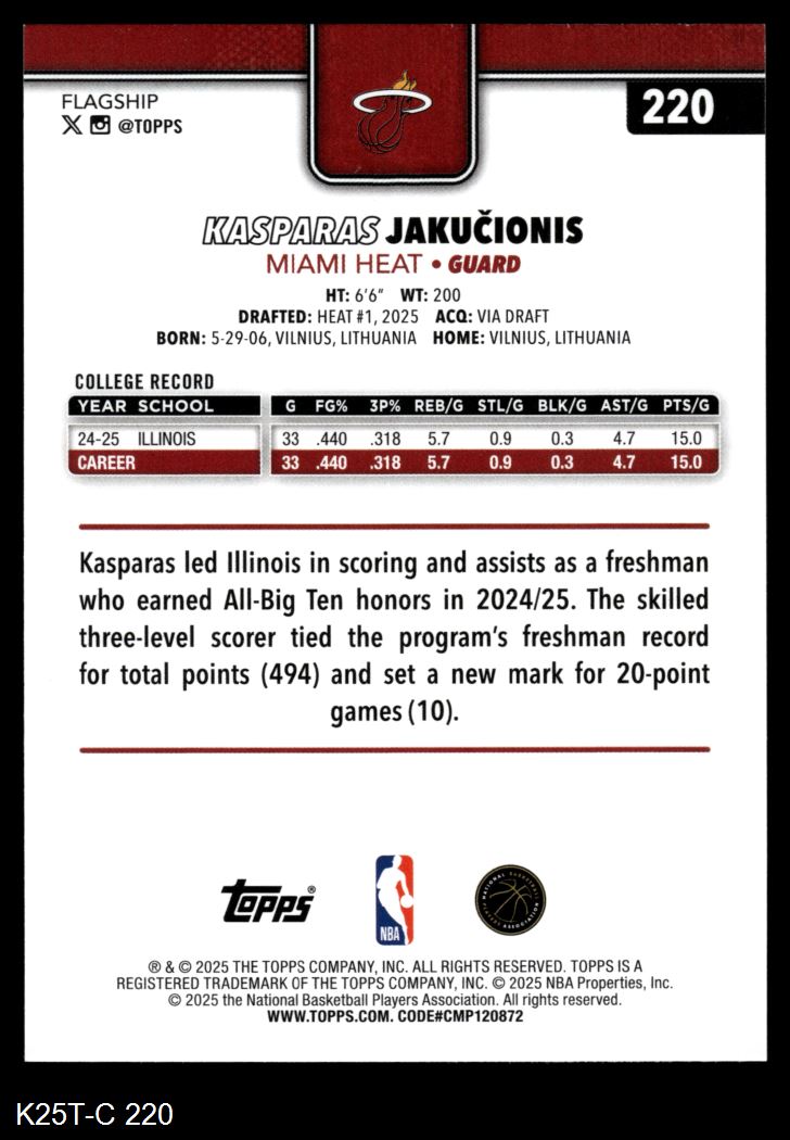 2025 Topps #220 Kasparas Jakucionis