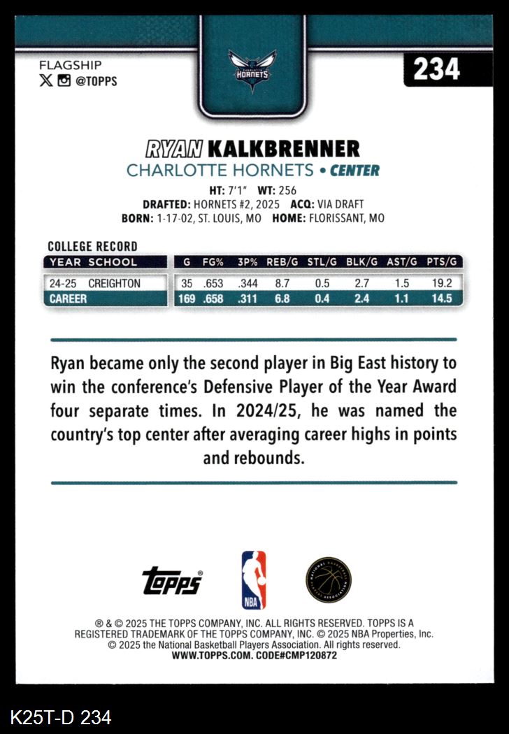 2025 Topps #234 Ryan Kalkbrenner 8 - NM/MT