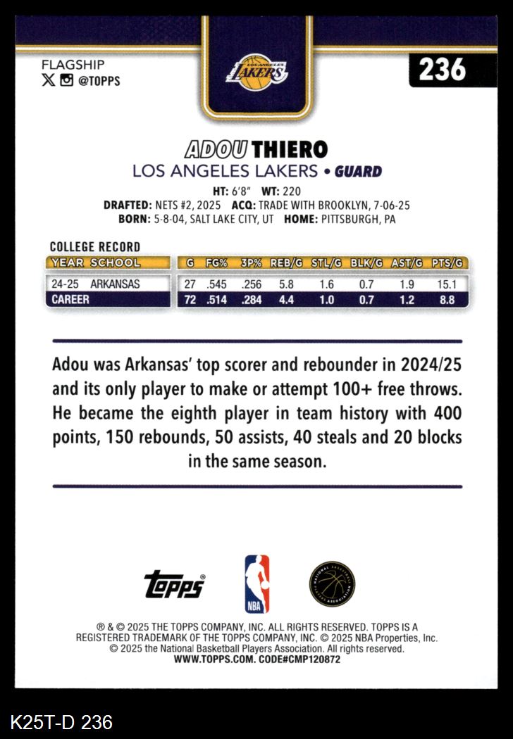 2025 Topps #236 Adou Thiero 8 - NM/MT
