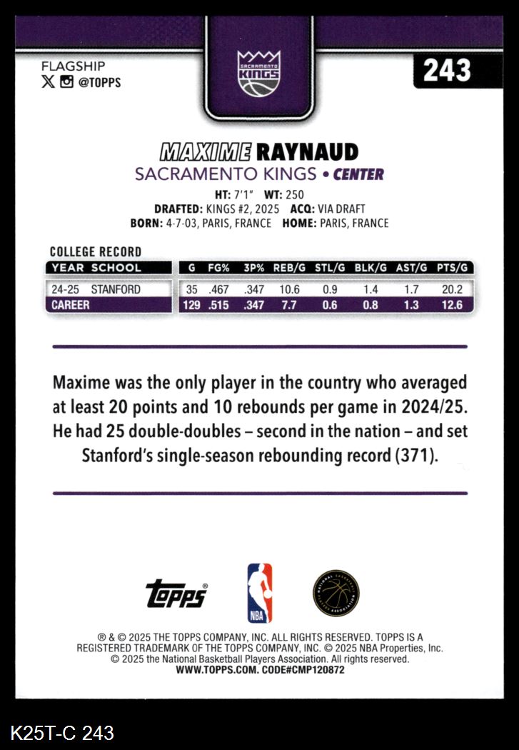 2025 Topps #243 Maxime Raynaud 8 - NM/MT