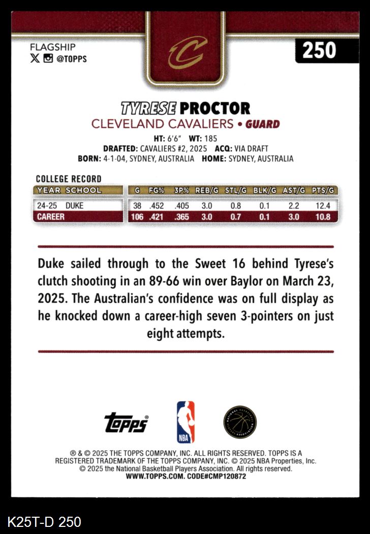 2025 Topps #250 Tyrese Proctor 8 - NM/MT