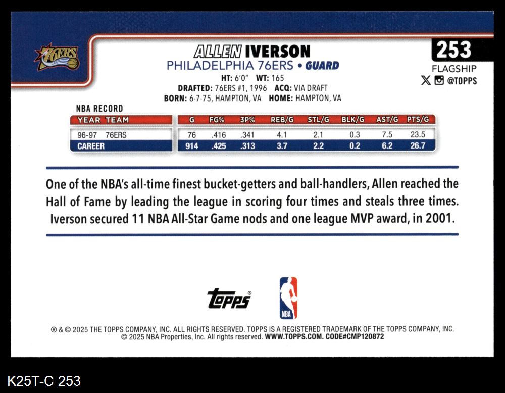 2025 Topps #253 Allen Iverson 8 - NM/MT