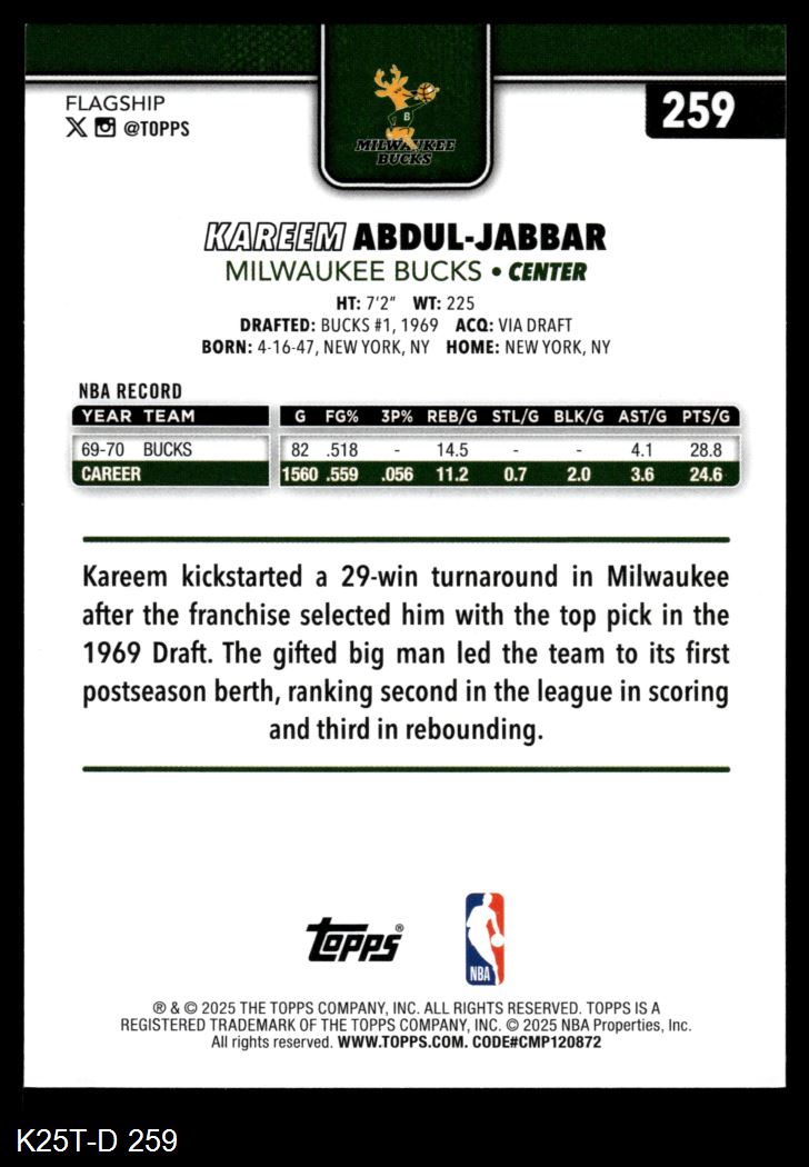 2025 Topps #259 Kareem Abdul-Jabbar 8 - NM/MT
