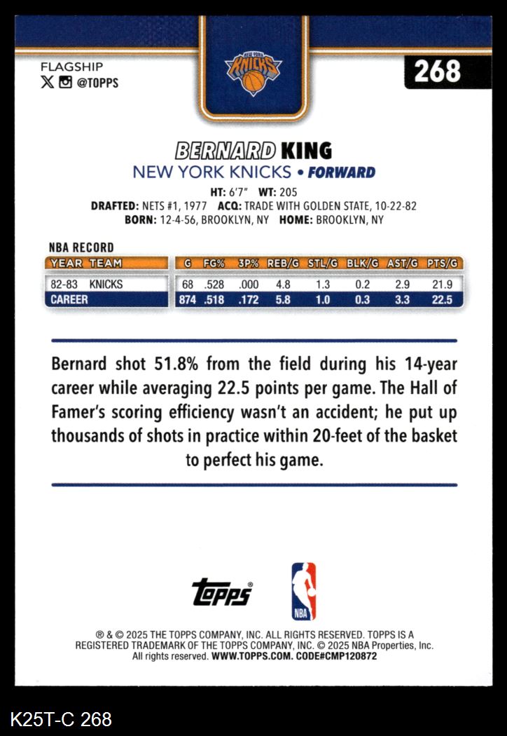 2025 Topps #268 Bernard King 8 - NM/MT
