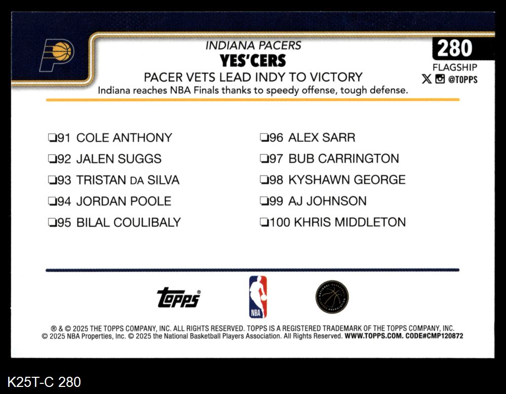 2025 Topps #280 Tyrese Haliburton 8 - NM/MT
