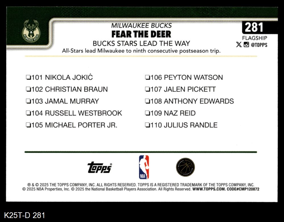 2025 Topps #281 Giannis Antetokounmpo 8 - NM/MT