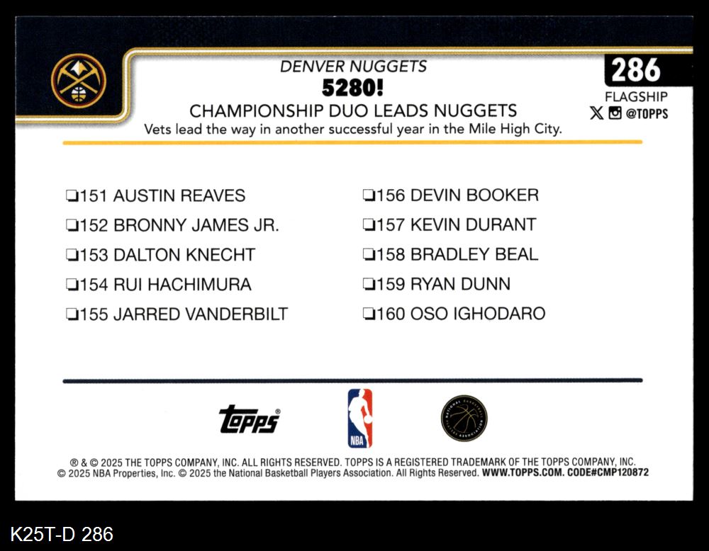 2025 Topps #286 Nikola Jokic 8 - NM/MT