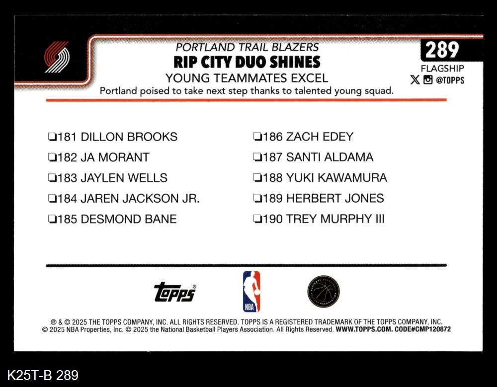 2025 Topps #289 Shaedon Sharpe 8 - NM/MT