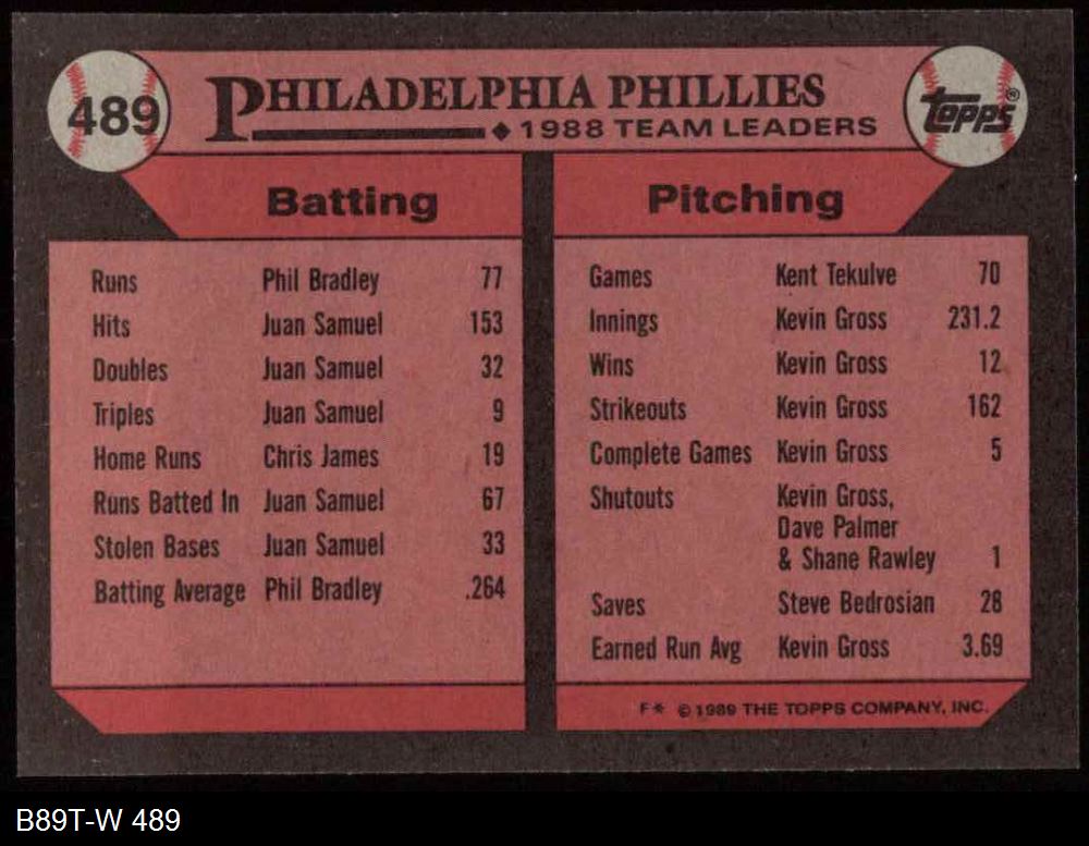 1989 Topps #489 - Mike Schmidt Phillies Leaders 8 - NM/MT