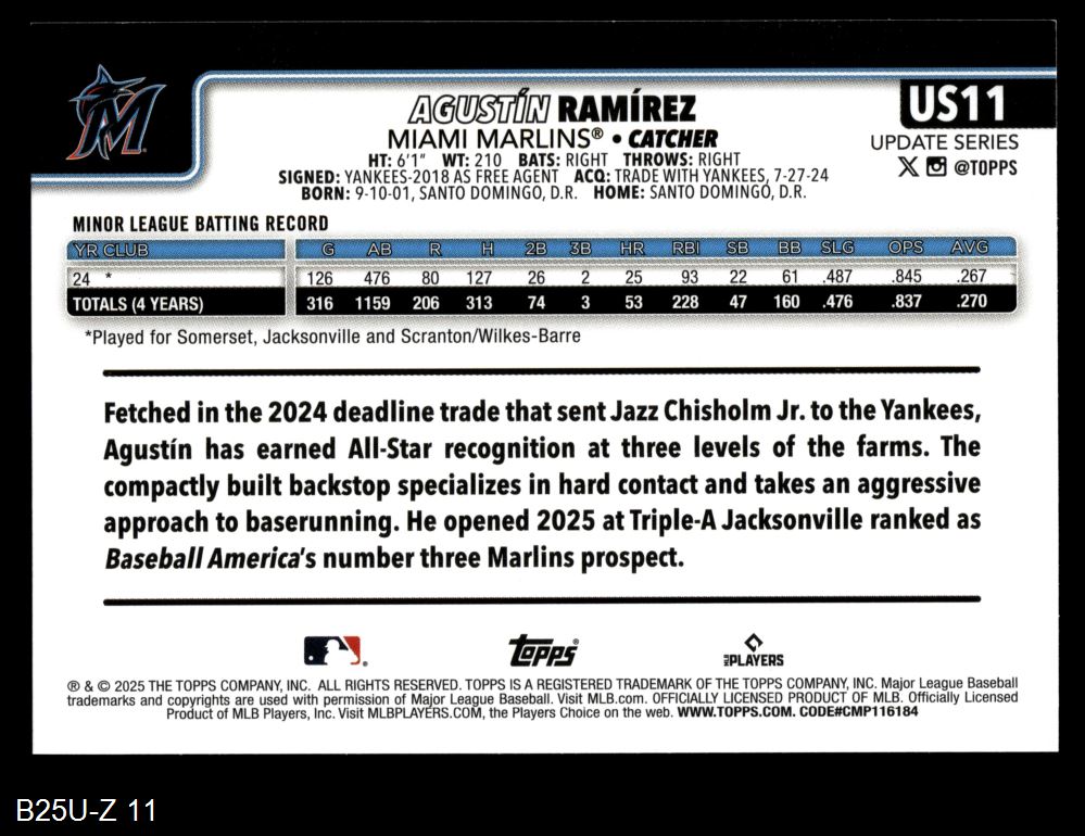 2025 Topps Update #11 Agustin Ramirez 8 - NM/MT