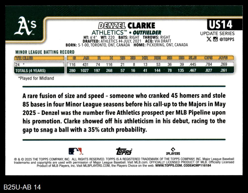 2025 Topps Update Athletics