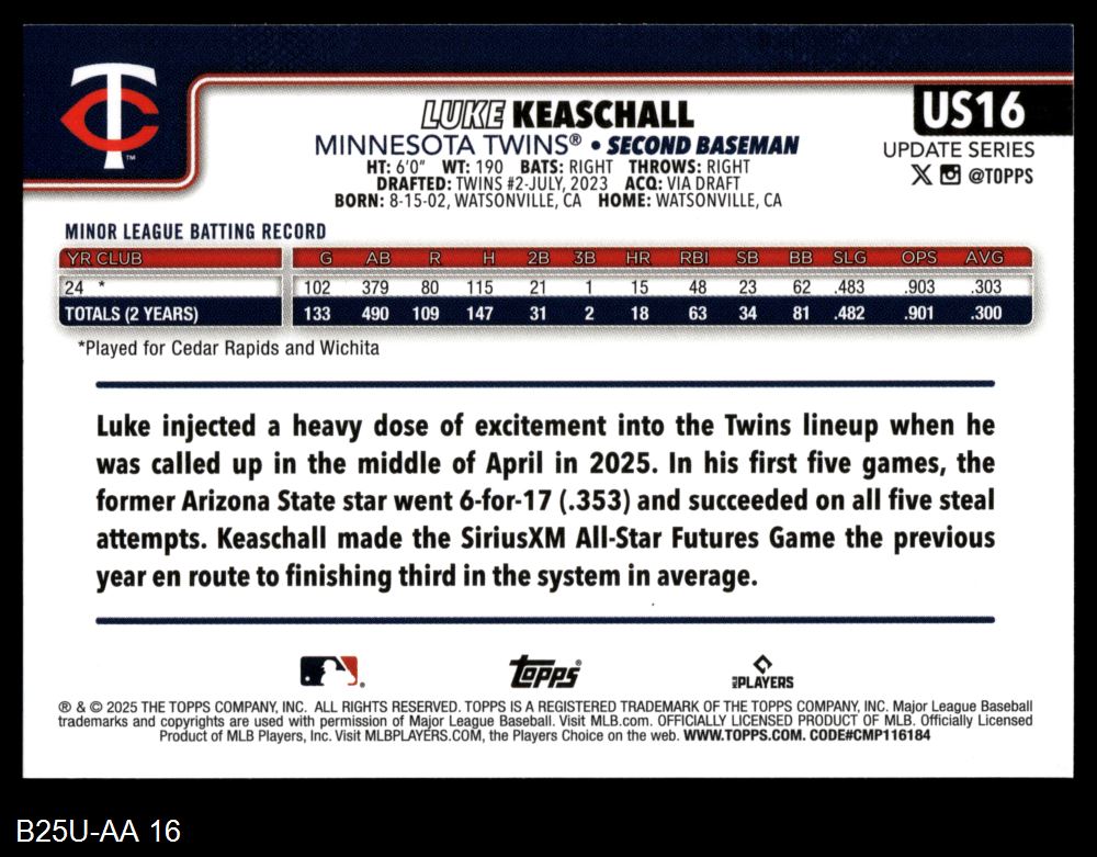 2025 Topps Update #16 Luke Keaschall 8 - NM/MT