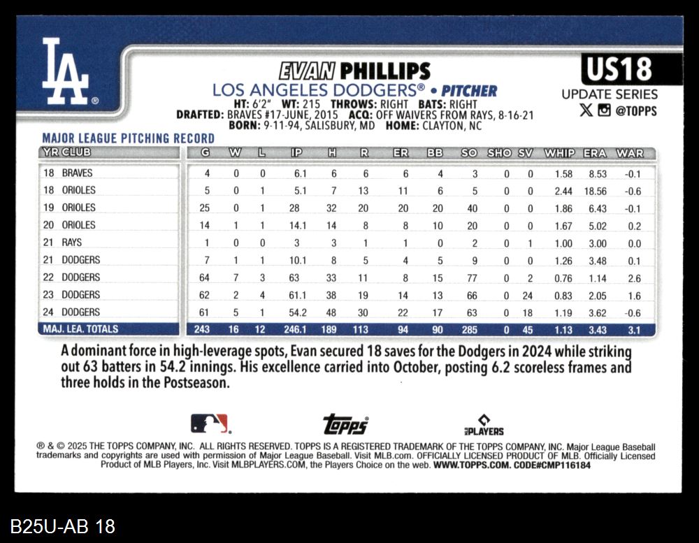 2025 Topps Update #18 Evan Phillips 8 - NM/MT