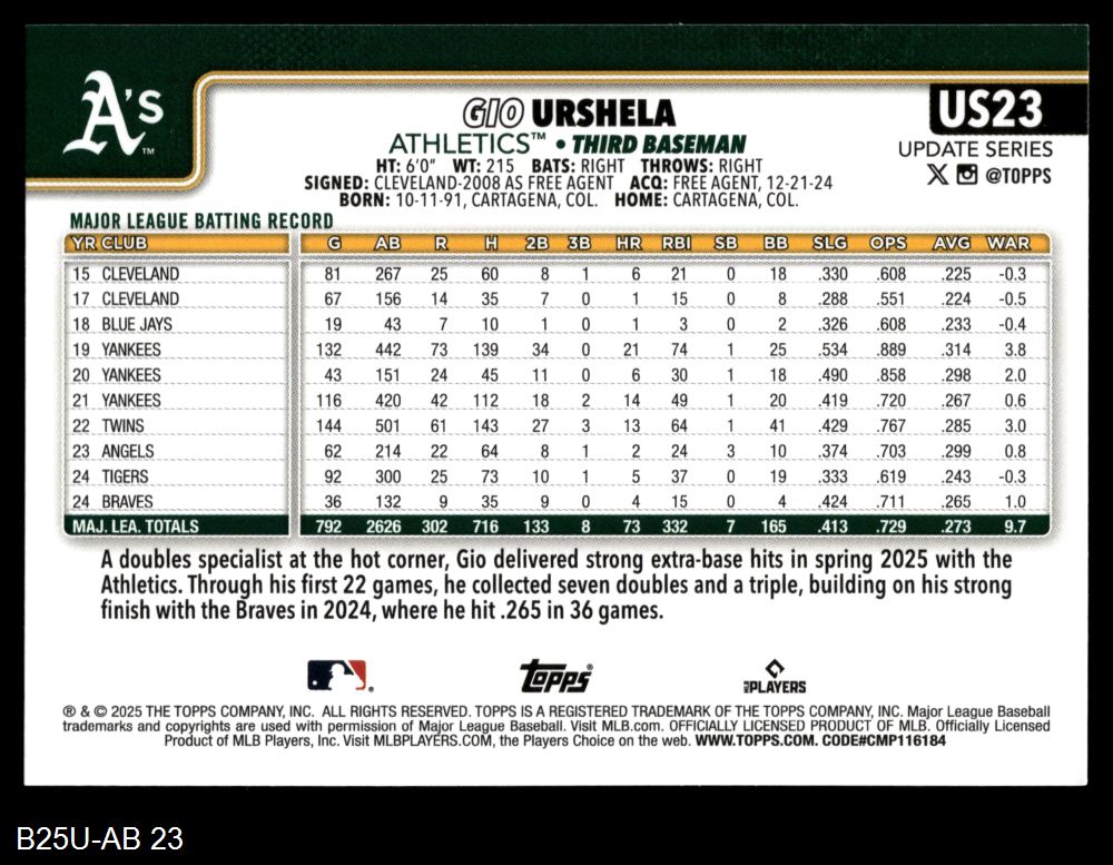 2025 Topps Update Baseball Cards (892 available)2025 Topps Update Athletics (15 available)