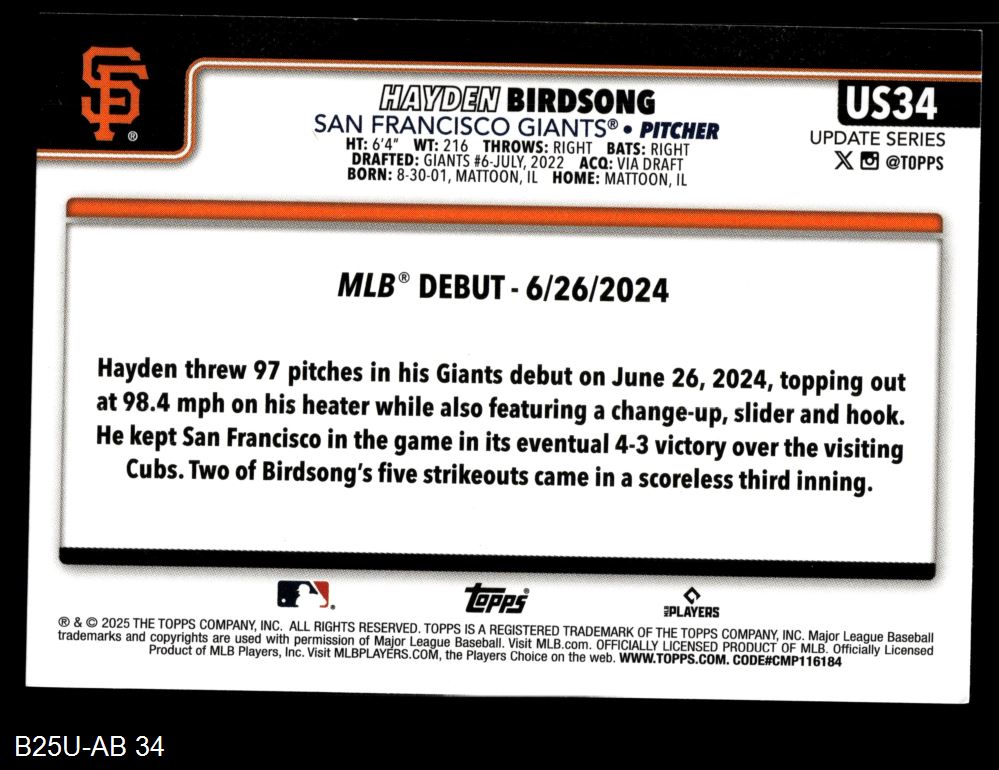 2025 Topps Update #34 - Hayden Birdsong Rookie Debut 8 - NM/MT