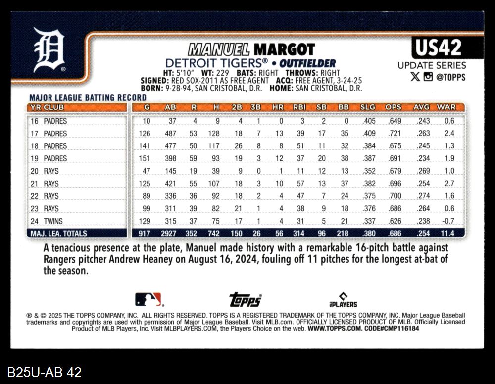 2025 Topps Update #42 Manuel Margot 8 - NM/MT