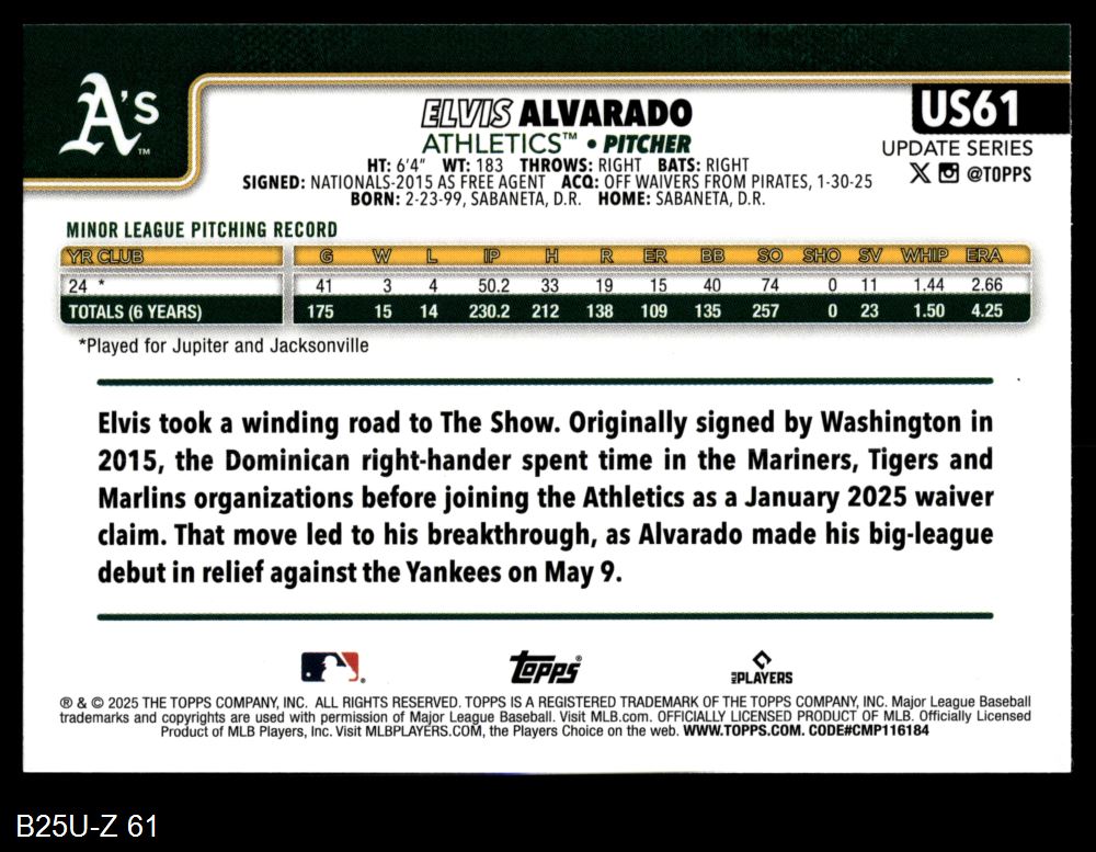 2025 Topps Update #61 Elvis Alvarado 8 - NM/MT