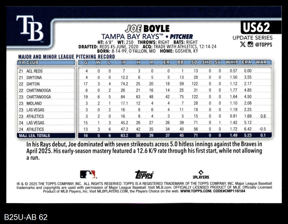 2025 Topps Update #62 Joe Boyle 8 - NM/MT