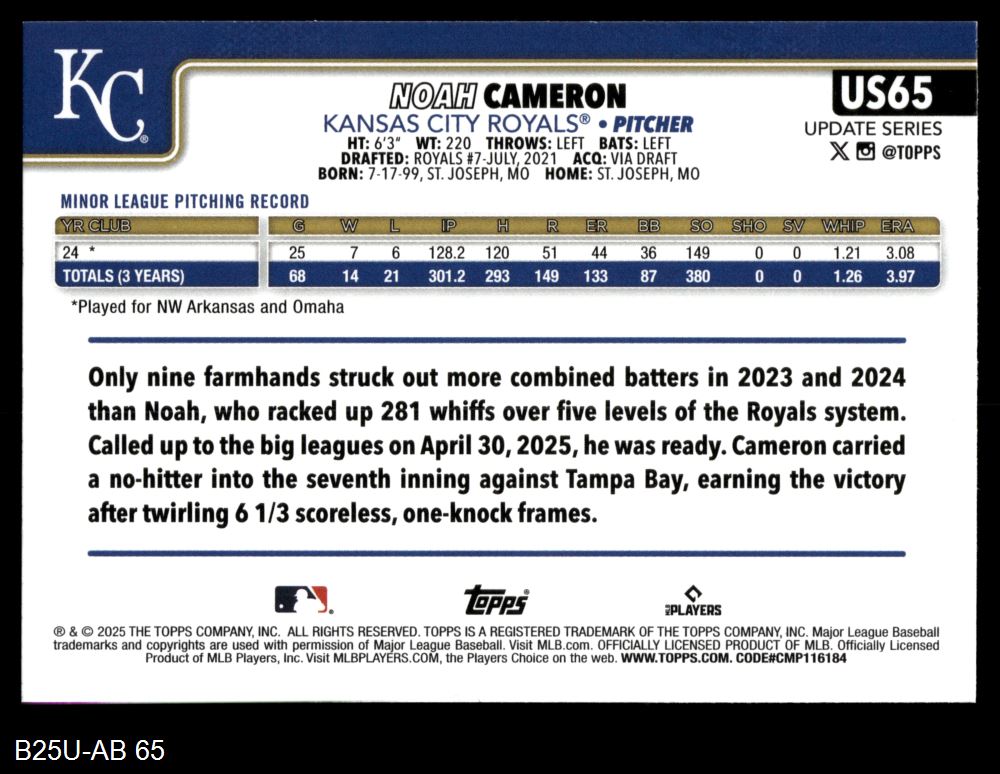 2025 Topps Update #65 Noah Cameron