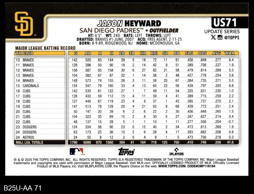 2025 Topps Update #71 Jason Heyward 8 - NM/MT