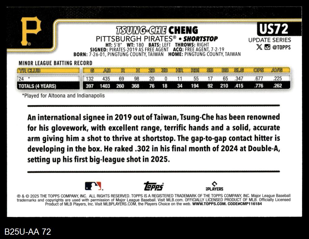 2025 Topps Update #72 Tsung-Che Cheng 8 - NM/MT