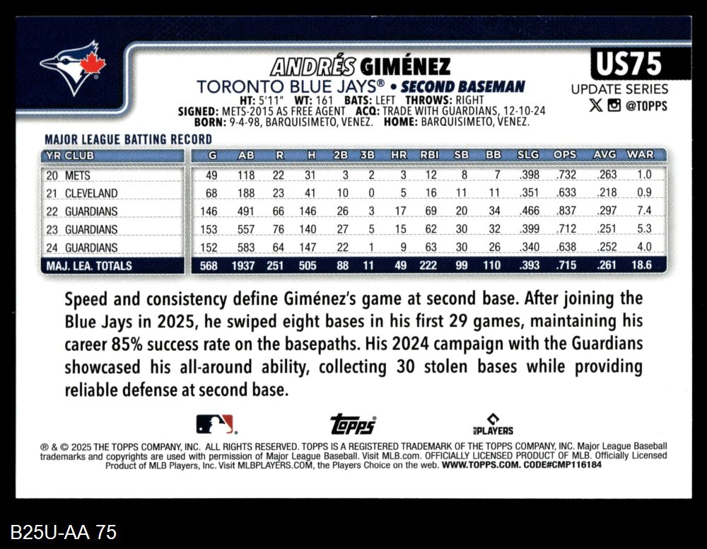 2025 Topps Update #75 Andres Gimenez 8 - NM/MT