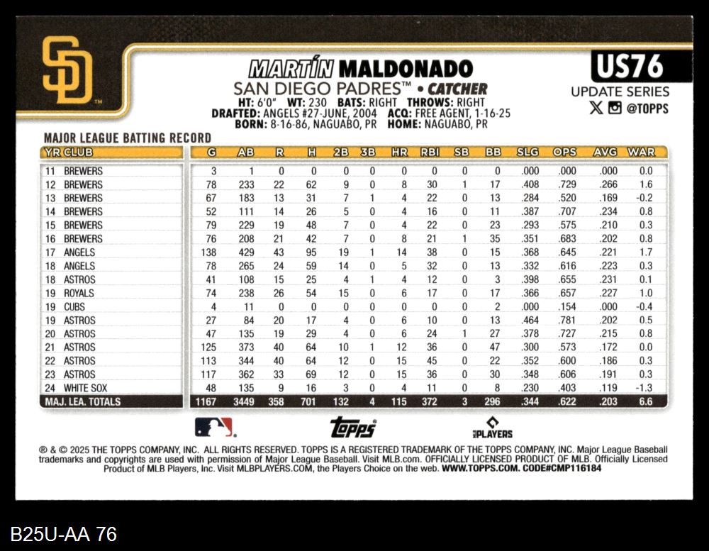 2025 Topps Update #76 Martin Maldonado