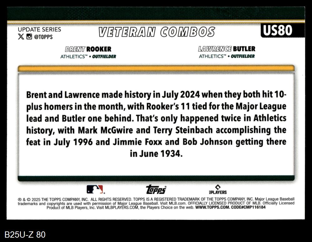 2025 Topps Update Athletics (19 available)Lawrence Butler / Brent Rooker (1 available)