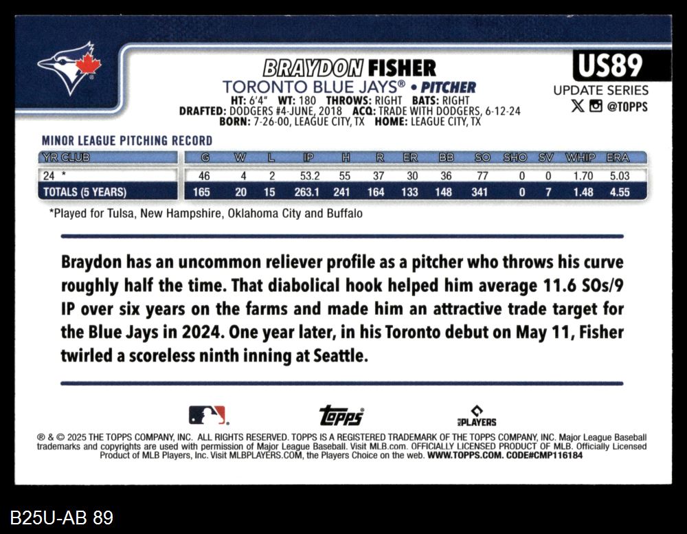 2025 Topps Update #89 Braydon Fisher