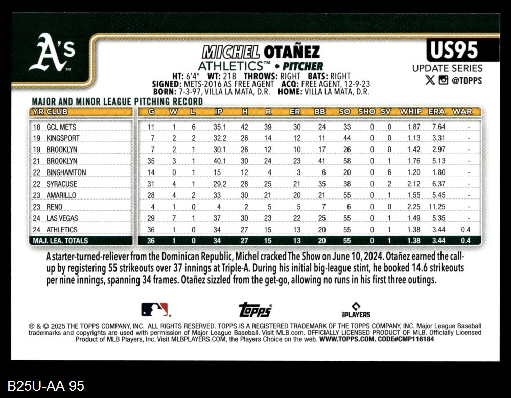2025 Topps Update Baseball Cards (892 available)2025 Topps Update Athletics (15 available)