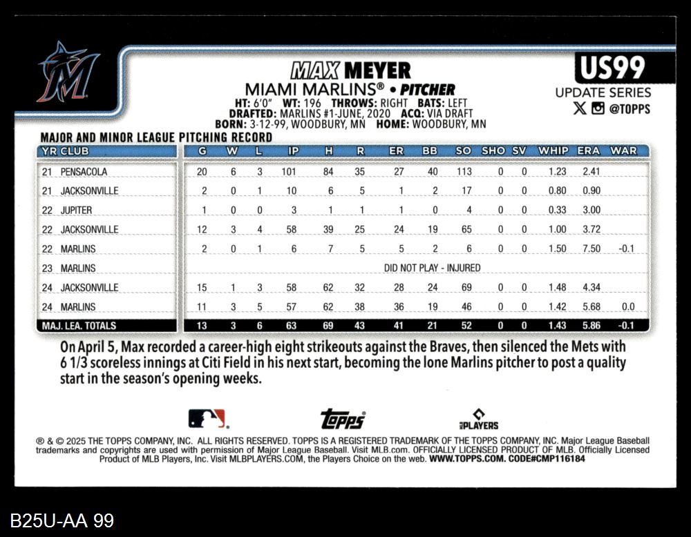 2025 Topps Update #99 Max Meyer 8 - NM/MT