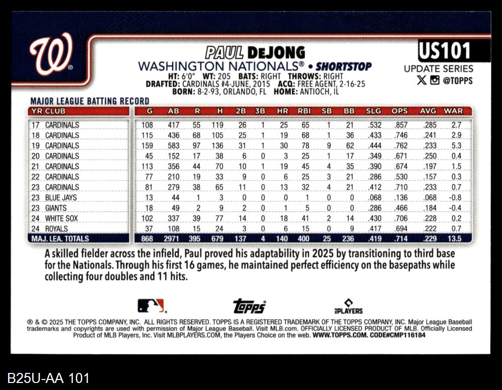 2025 Topps Update #101 Paul DeJong