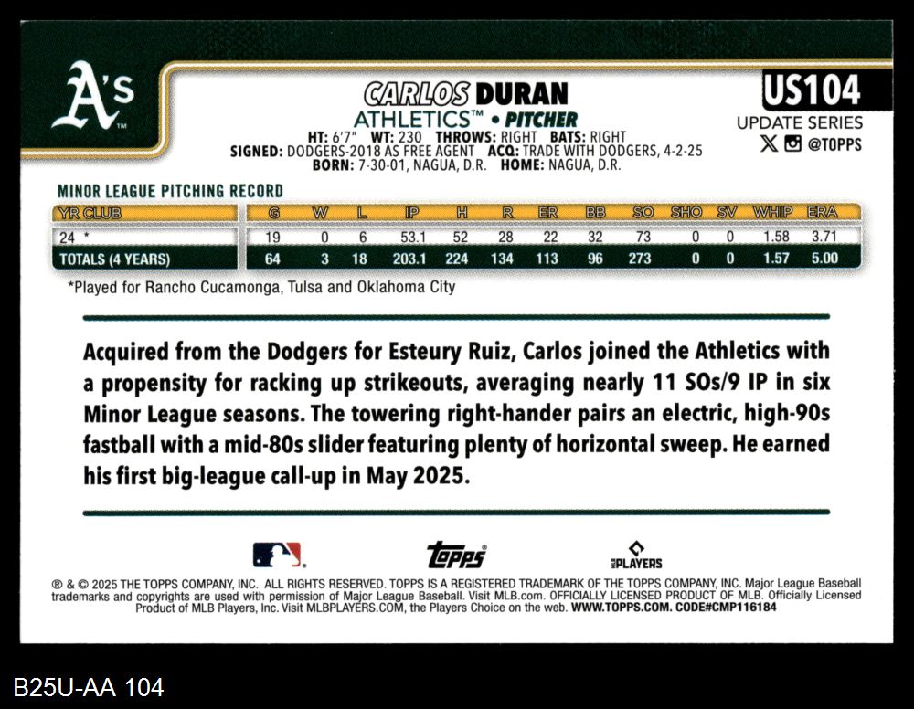 2025 Topps Update Baseball Cards (892 available)2025 Topps Update Athletics (15 available)