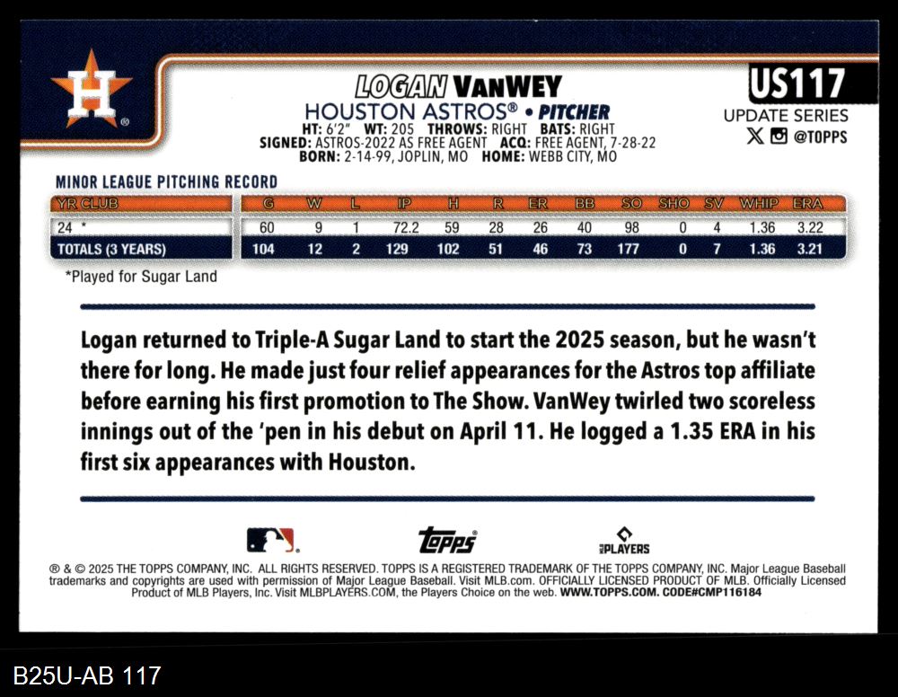 2025 Topps Update #117 Logan VanWey