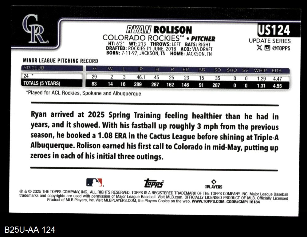 2025 Topps Update #124 Ryan Rolison 8 - NM/MT