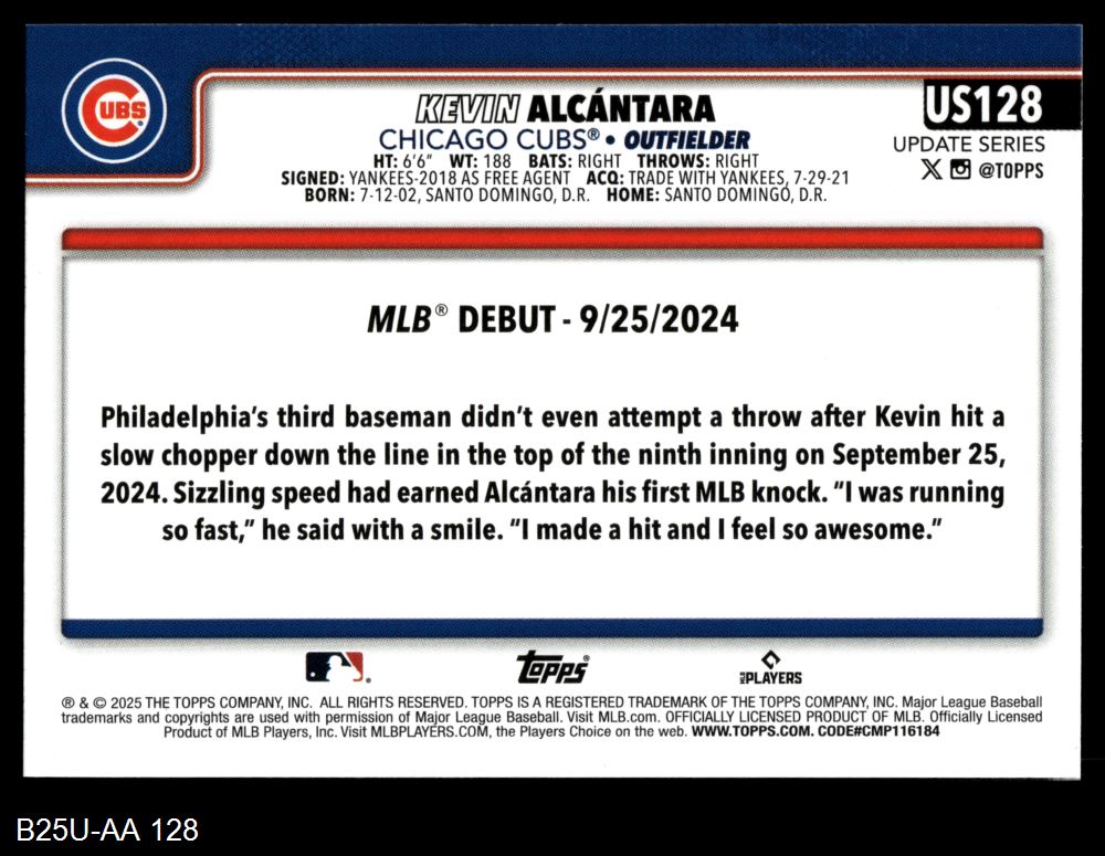 2025 Topps Update #128 - Kevin Alcantara Rookie Debut 8 - NM/MT