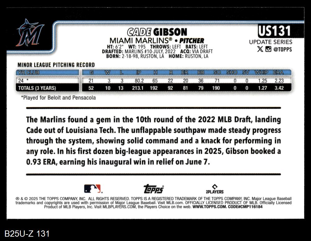 2025 Topps Update #131 Cade Gibson 8 - NM/MT