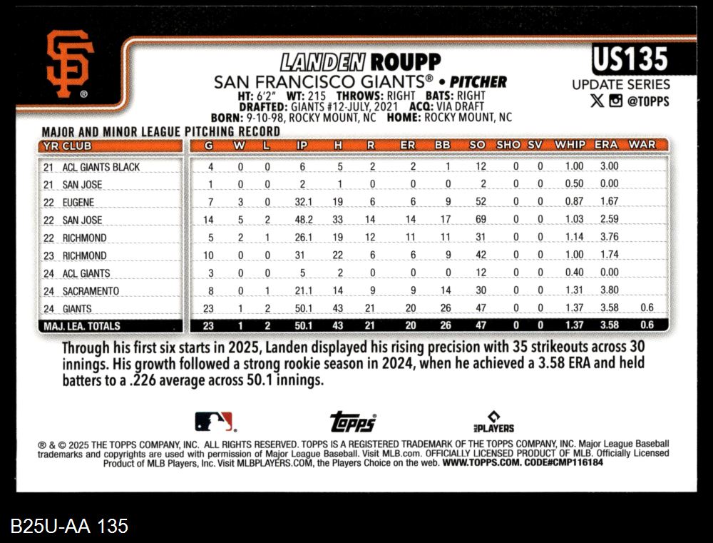 2025 Topps Update #135 Landen Roupp 8 - NM/MT