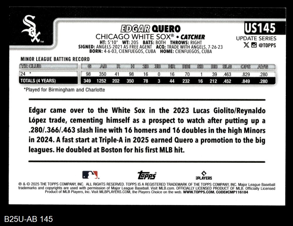 2025 Topps Update #145 Edgar Quero