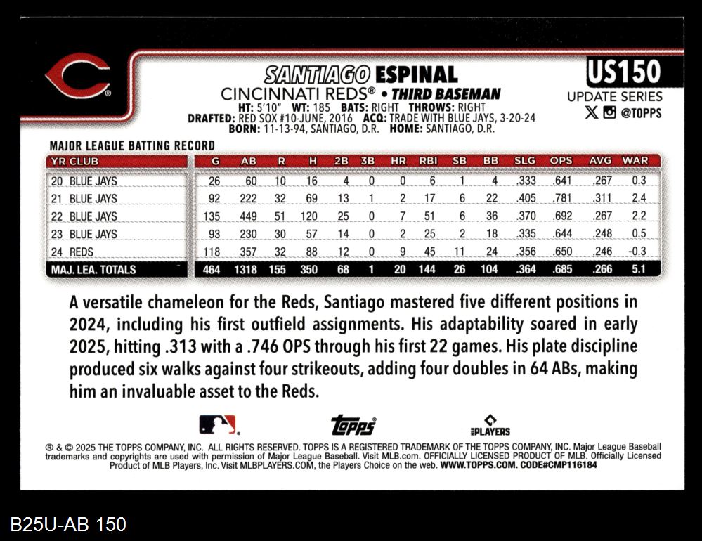 2025 Topps Update #150 Santiago Espinal 8 - NM/MT