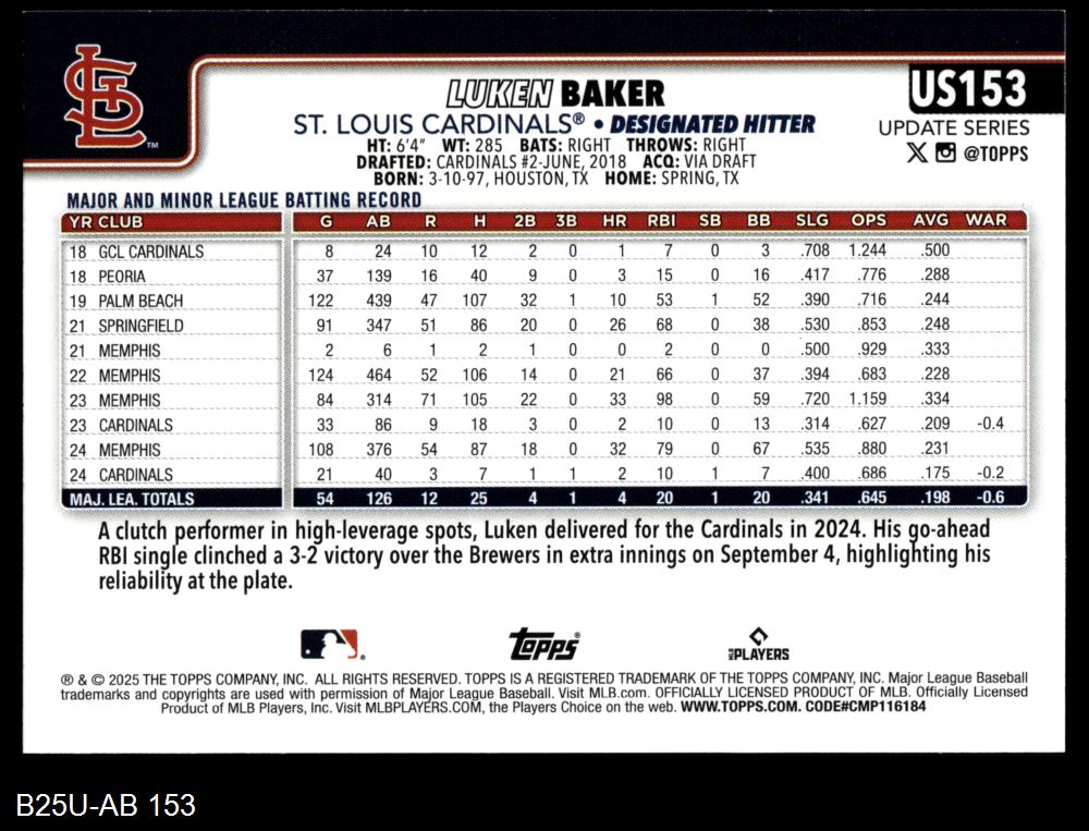 2025 Topps Update Baseball Cards (882 available)2025 Topps Update Cardinals (25 available)