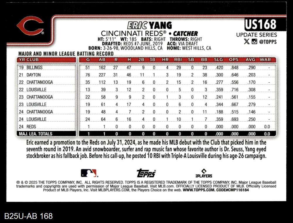 2025 Topps Update #168 Eric Yang