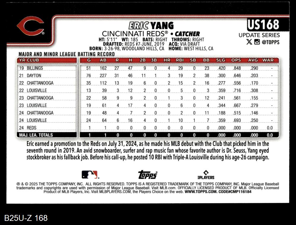 2025 Topps Update #168 Eric Yang 8 - NM/MT
