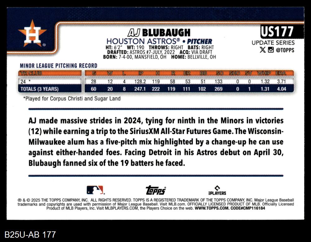 2025 Topps Update #177 AJ Blubaugh 8 - NM/MT