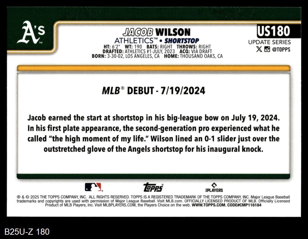 2025 Topps Update #180 - Jacob Wilson Rookie Debut 8 - NM/MT