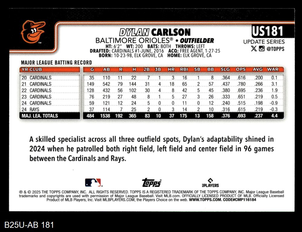 2025 Topps Update Baseball Cards (892 available)2025 Topps Update Orioles (10 available)