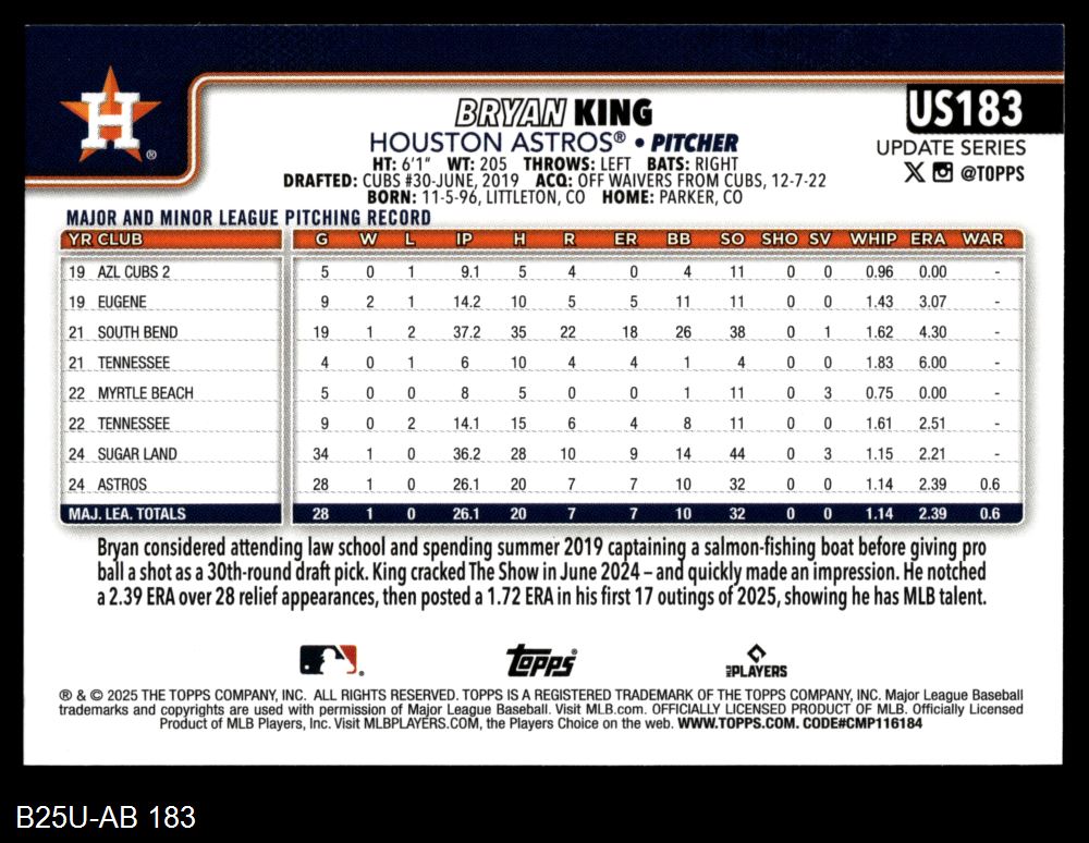 2025 Topps Update #183 Bryan King 8 - NM/MT
