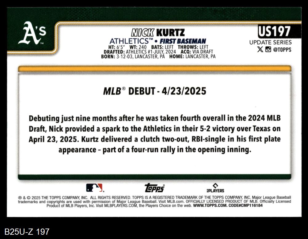 2025 Topps Update #197 - Nick Kurtz Rookie Debut 8 - NM/MT