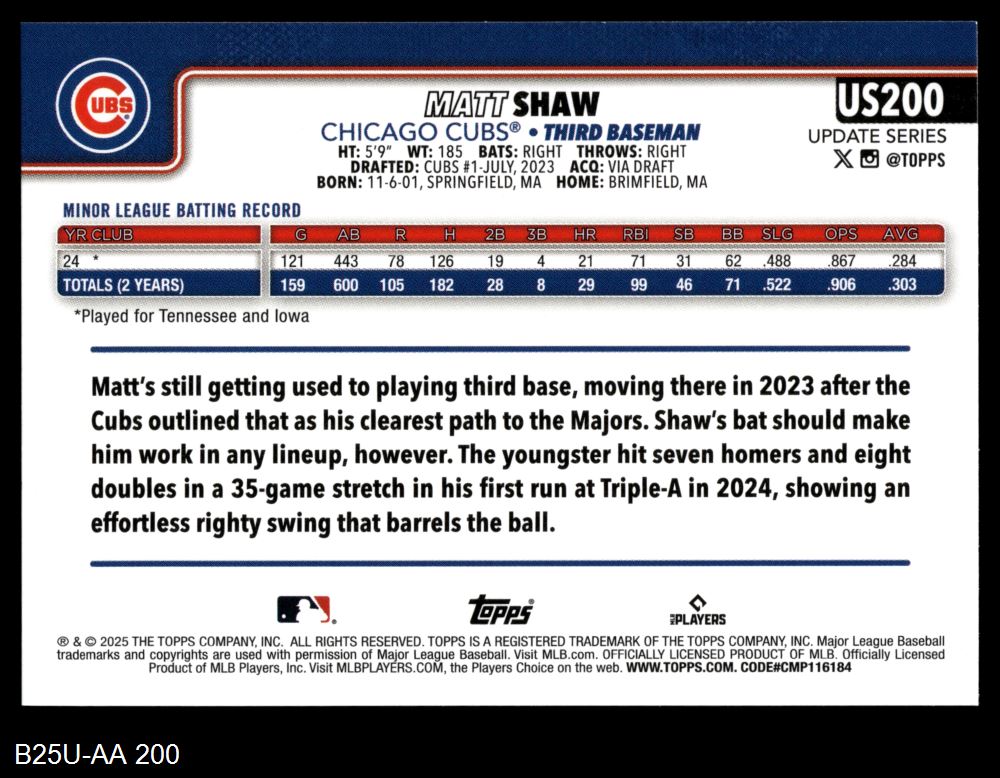 2025 Topps Update #200 Matt Shaw