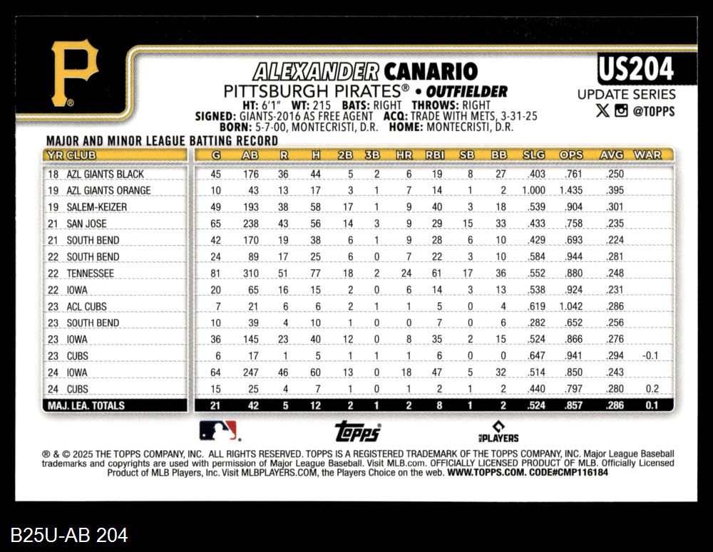 2025 Topps Update Baseball Cards (892 available)2025 Topps Update Pirates (8 available)